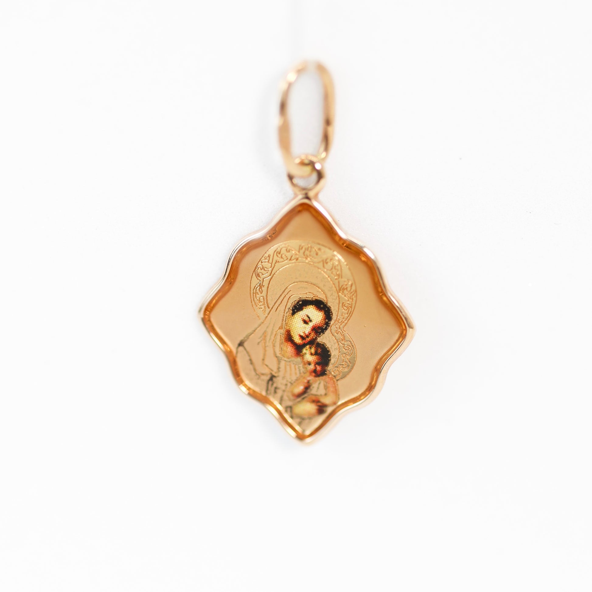 Золотий кулон-ікона Богородиця з Ісусом 585 | Gold Virgin Mary with Child Jesus Pendant 14k