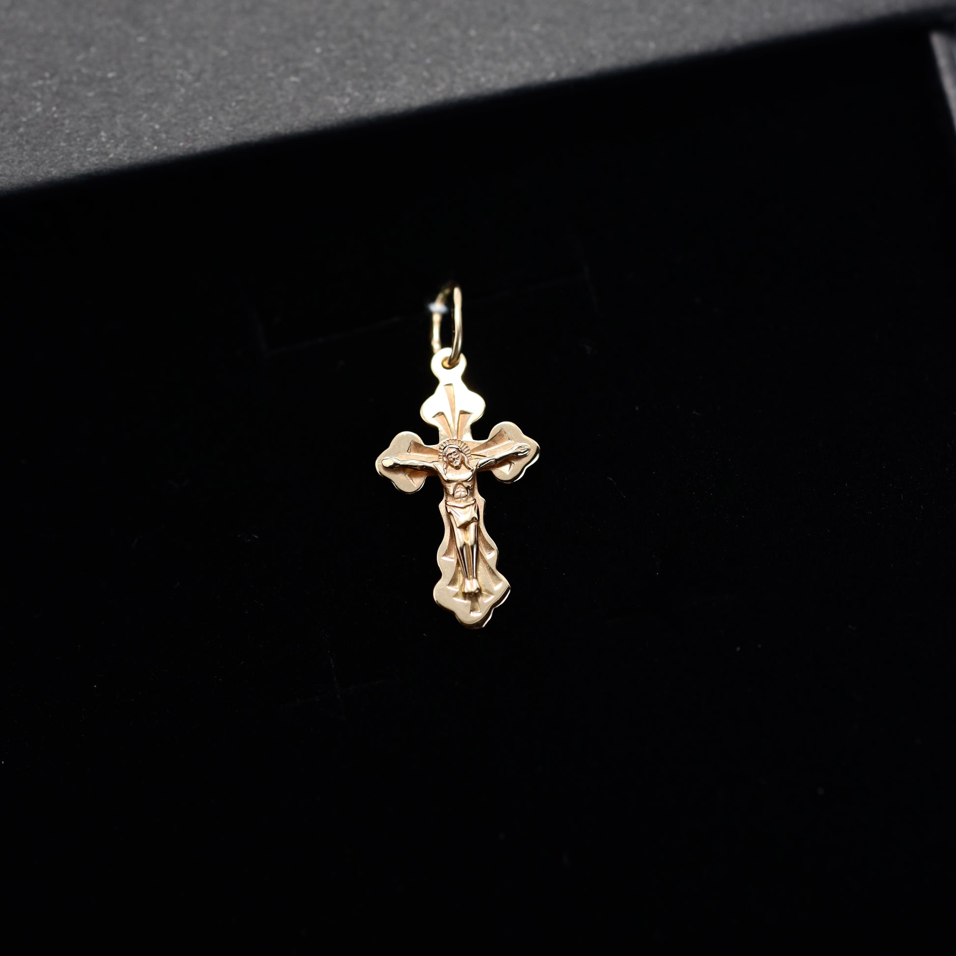 Золотий хрестик 585 проби | Gold Cross Pendant 14K | Хрестик із червоного золота | Gold Orthodox Cross | Ukrainian Jewelry