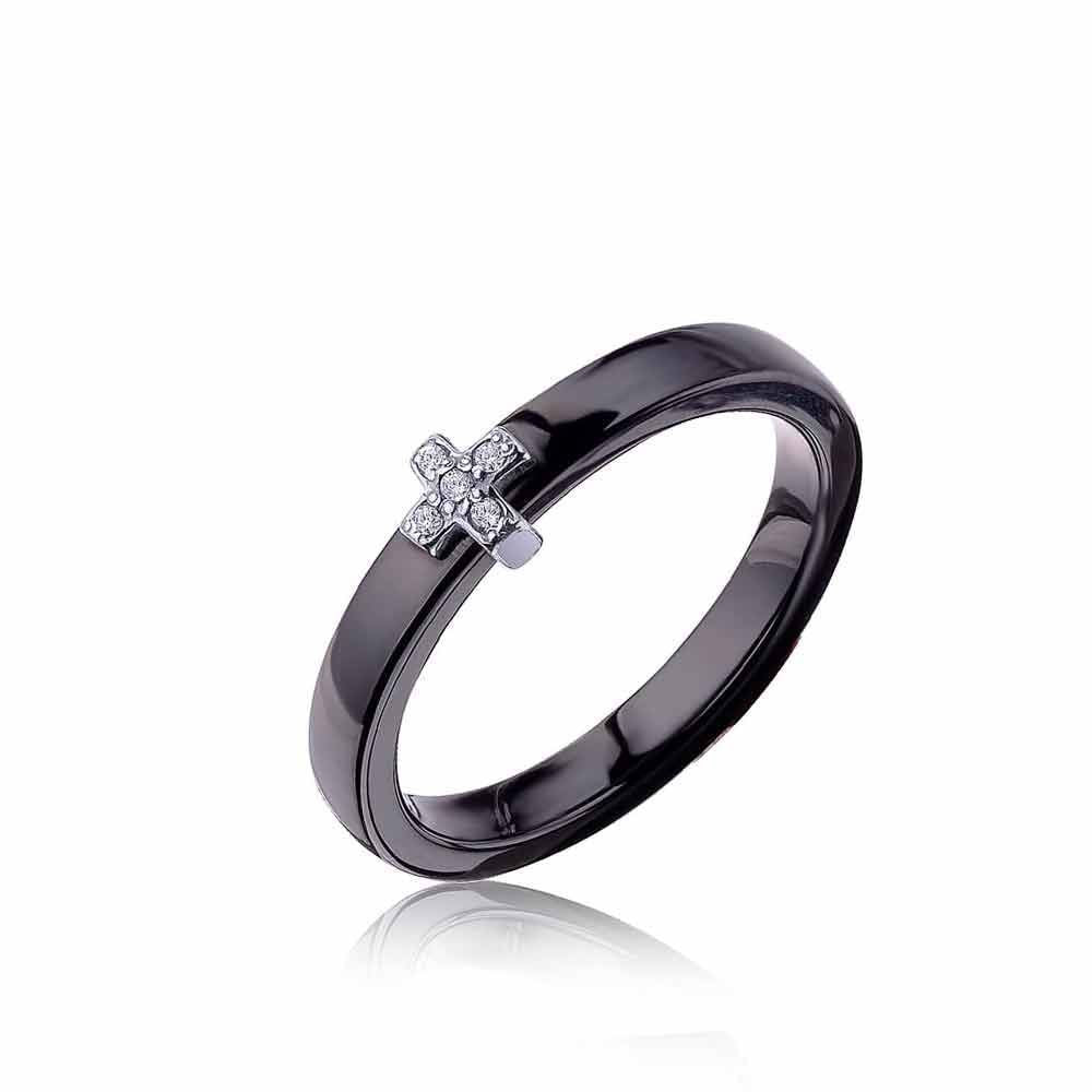 Каблучка керамічна з вставкою срібла та фіанітів.