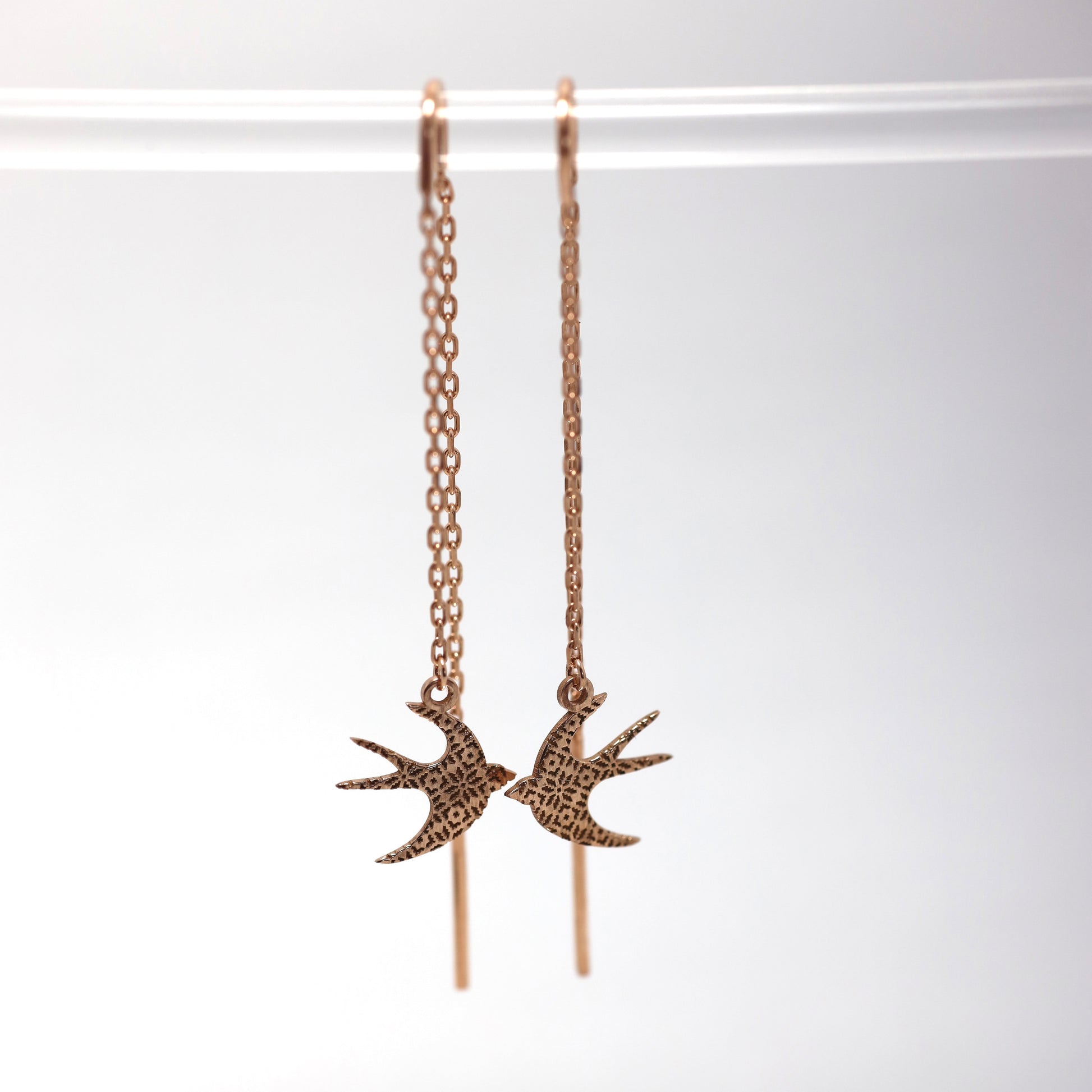 Стильні позолочені подовжені сережки Ластівка виготовлені зі срібла 925 проби з надійним золотим покриттям. Вишуканий дизайн символізує ніжність, свободу та жіночність. Легкі й комфортні у носінні, вони стануть ідеальним акцентом до будь-якого образу — від повсякденного до вечірнього.