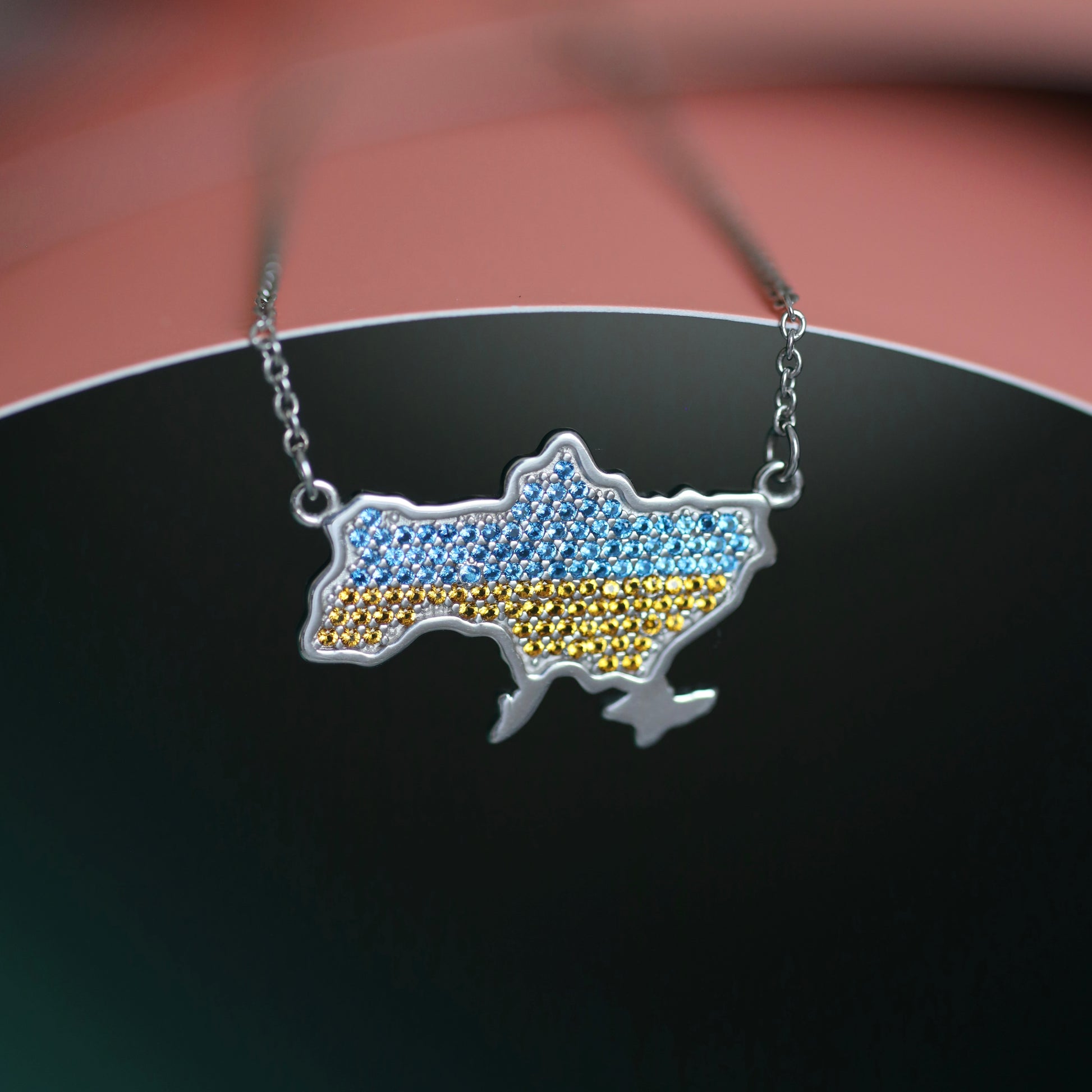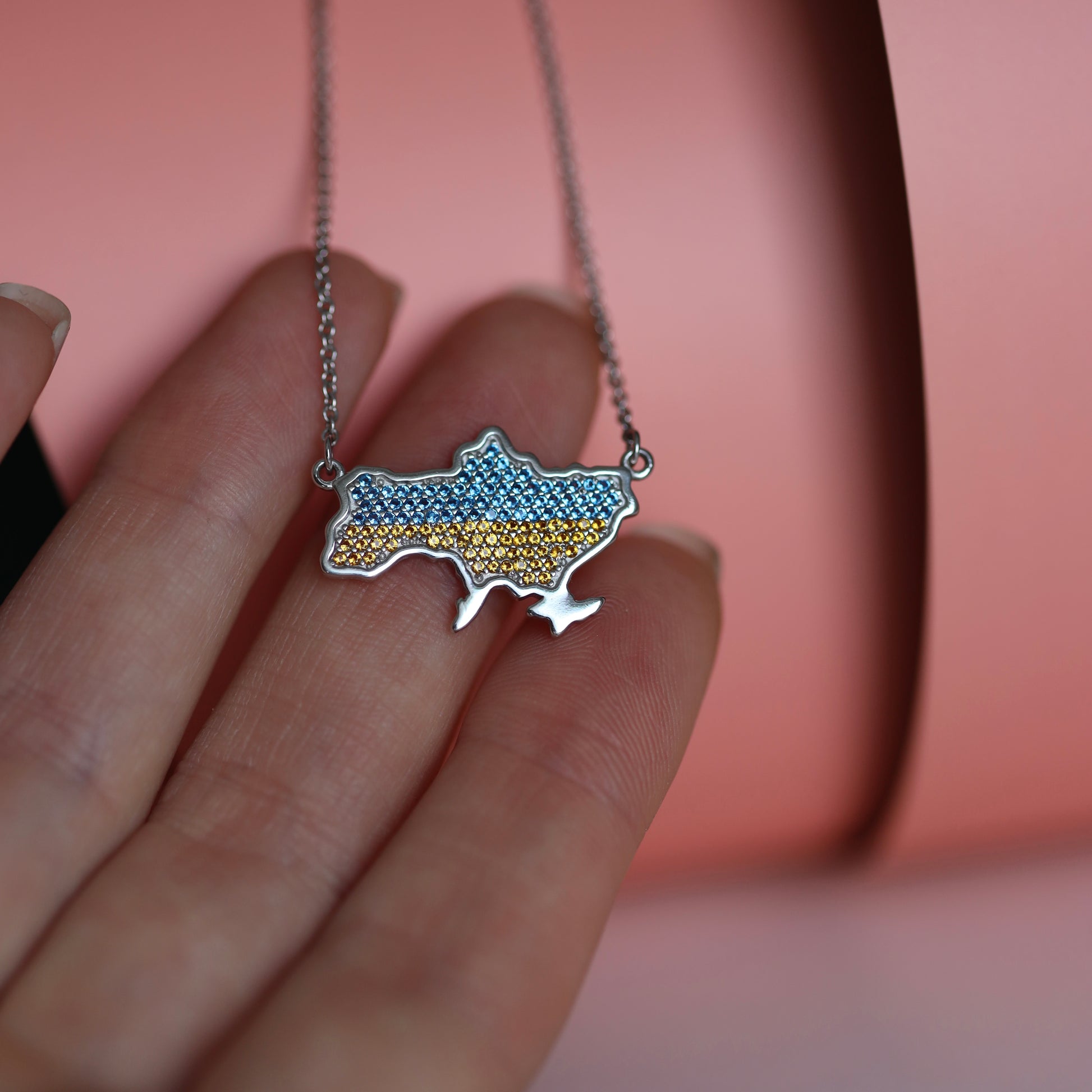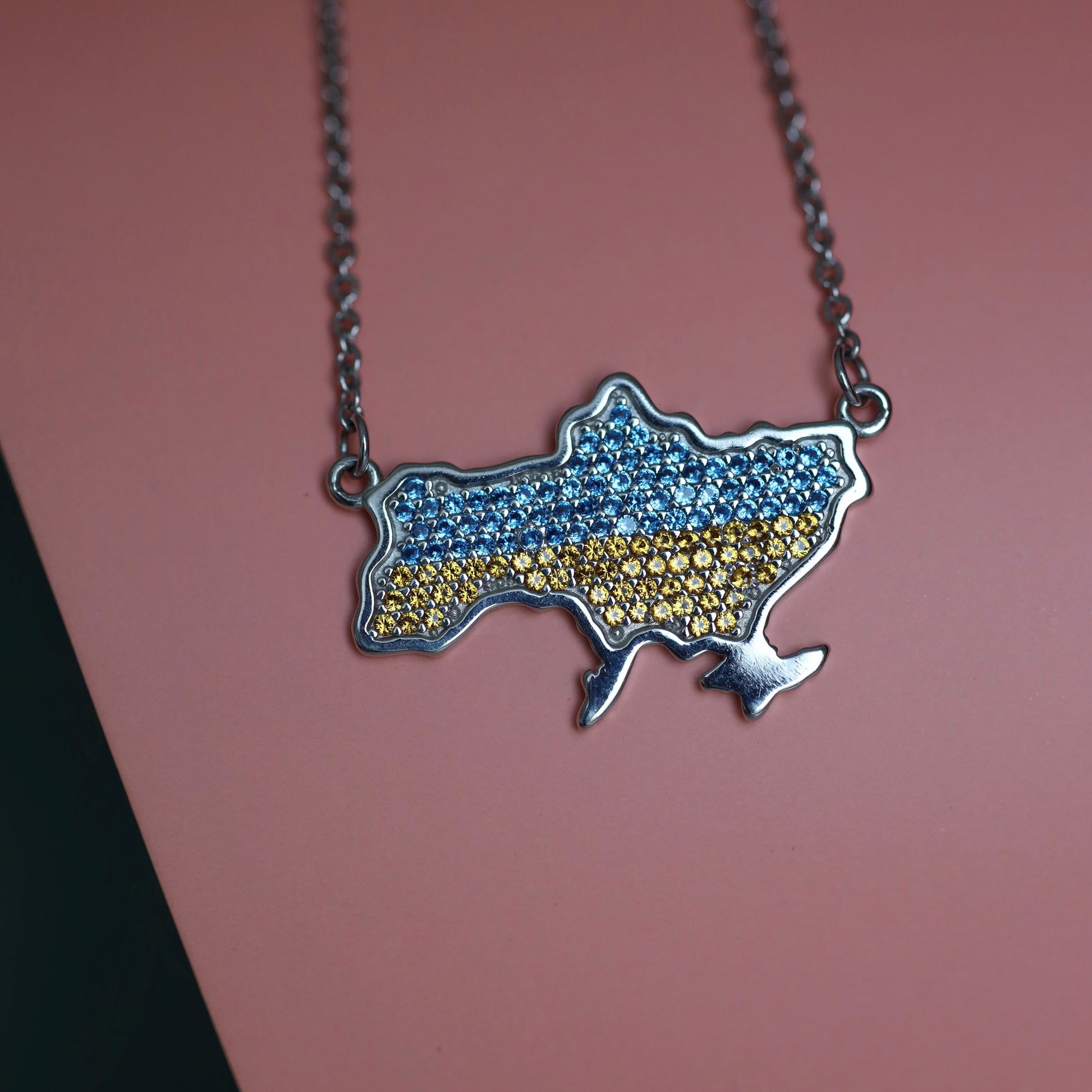 Срібне кольє вкрите фіанітами/Мапа України/срібло 925пр/6508