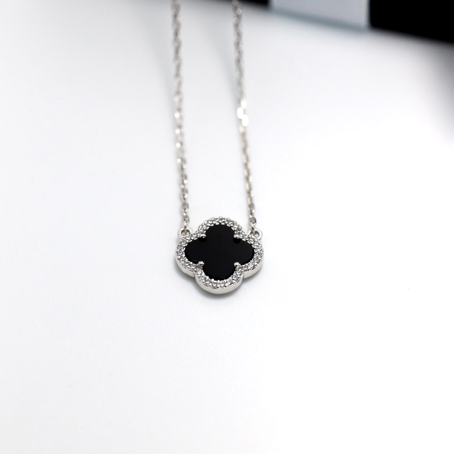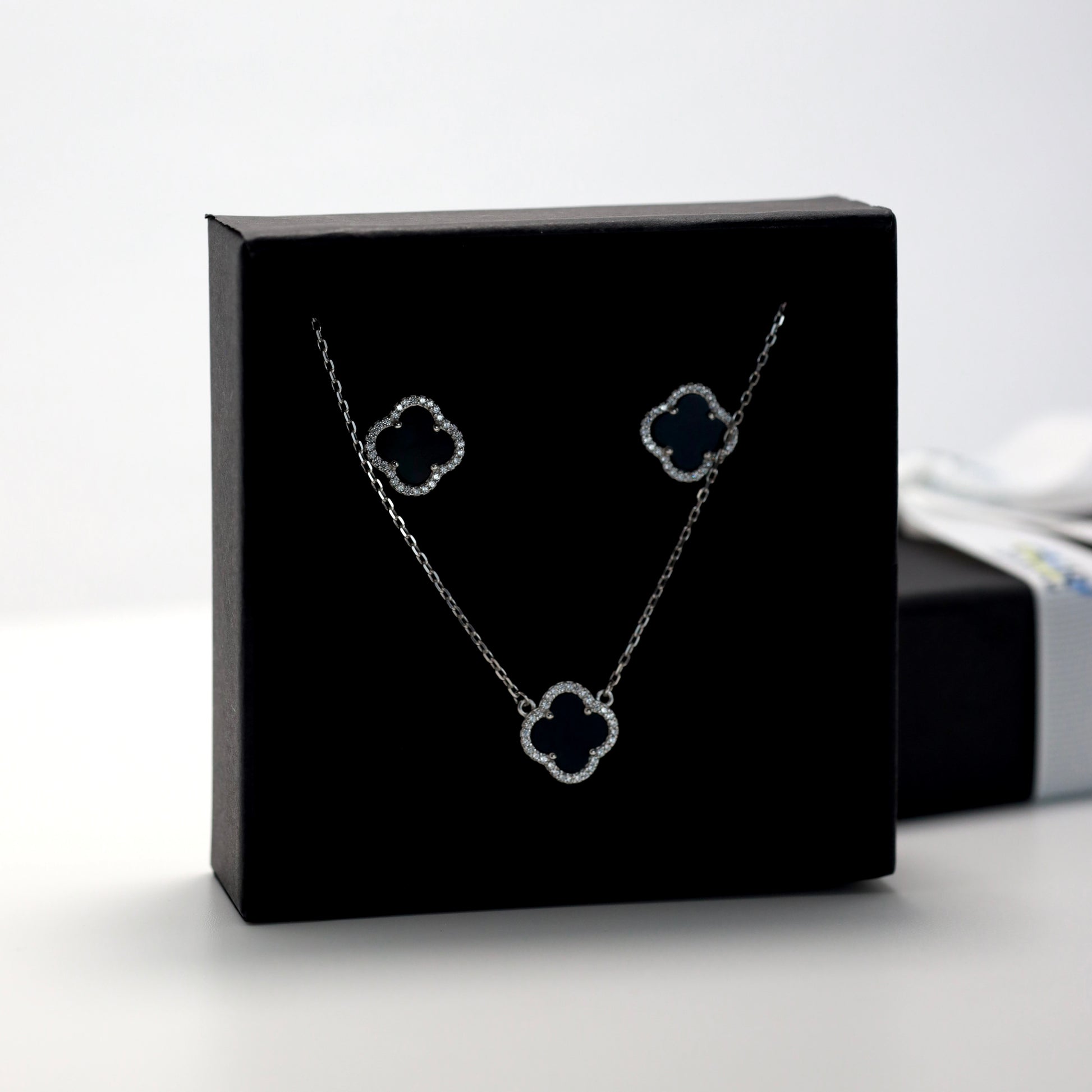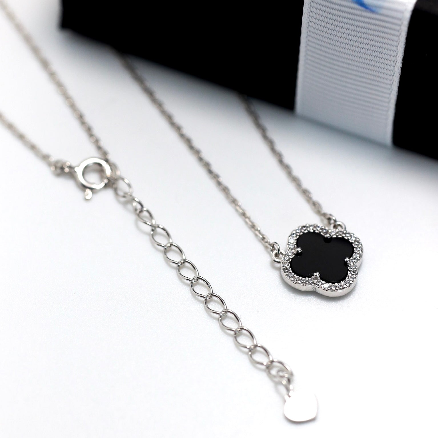 Срібне кольє з чорним оніксом та фіанітами/срібло 925пр/6141