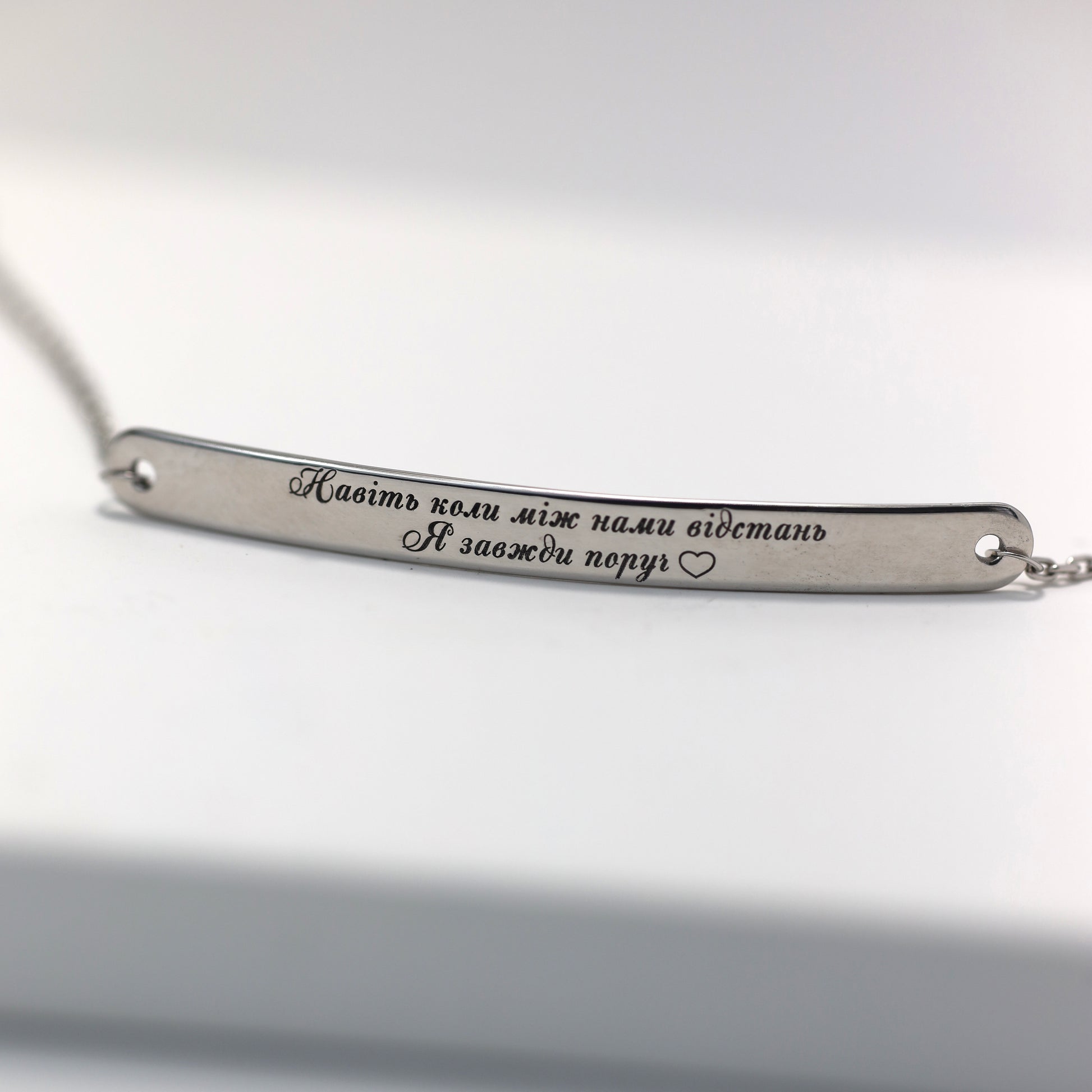 Срібний браслет з гравіюванням | Навіть коли між нами відстань, я завжди поруч | Silver 925 Bracelet with Engraving | Even When We’re Apart, I’m Always With You | 402