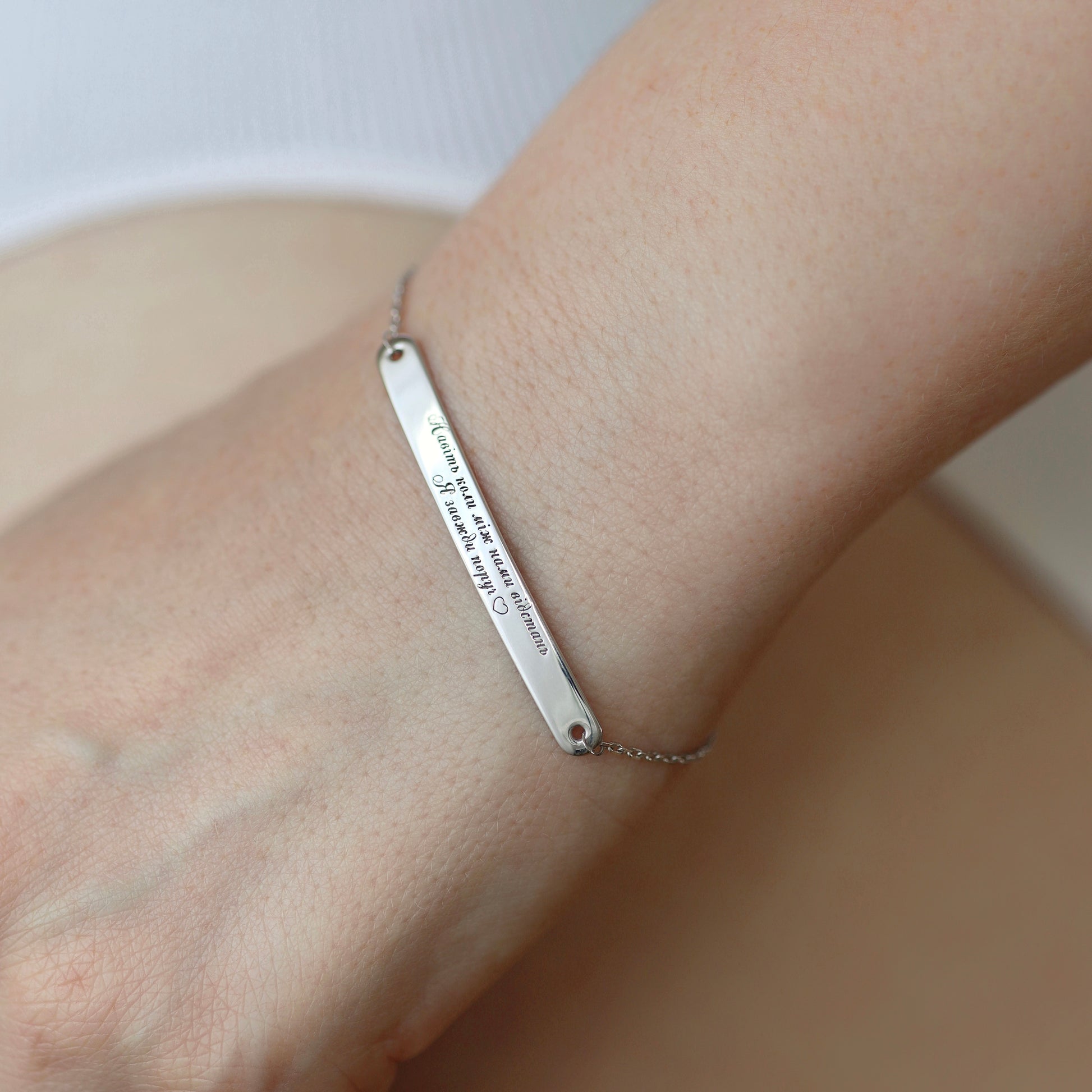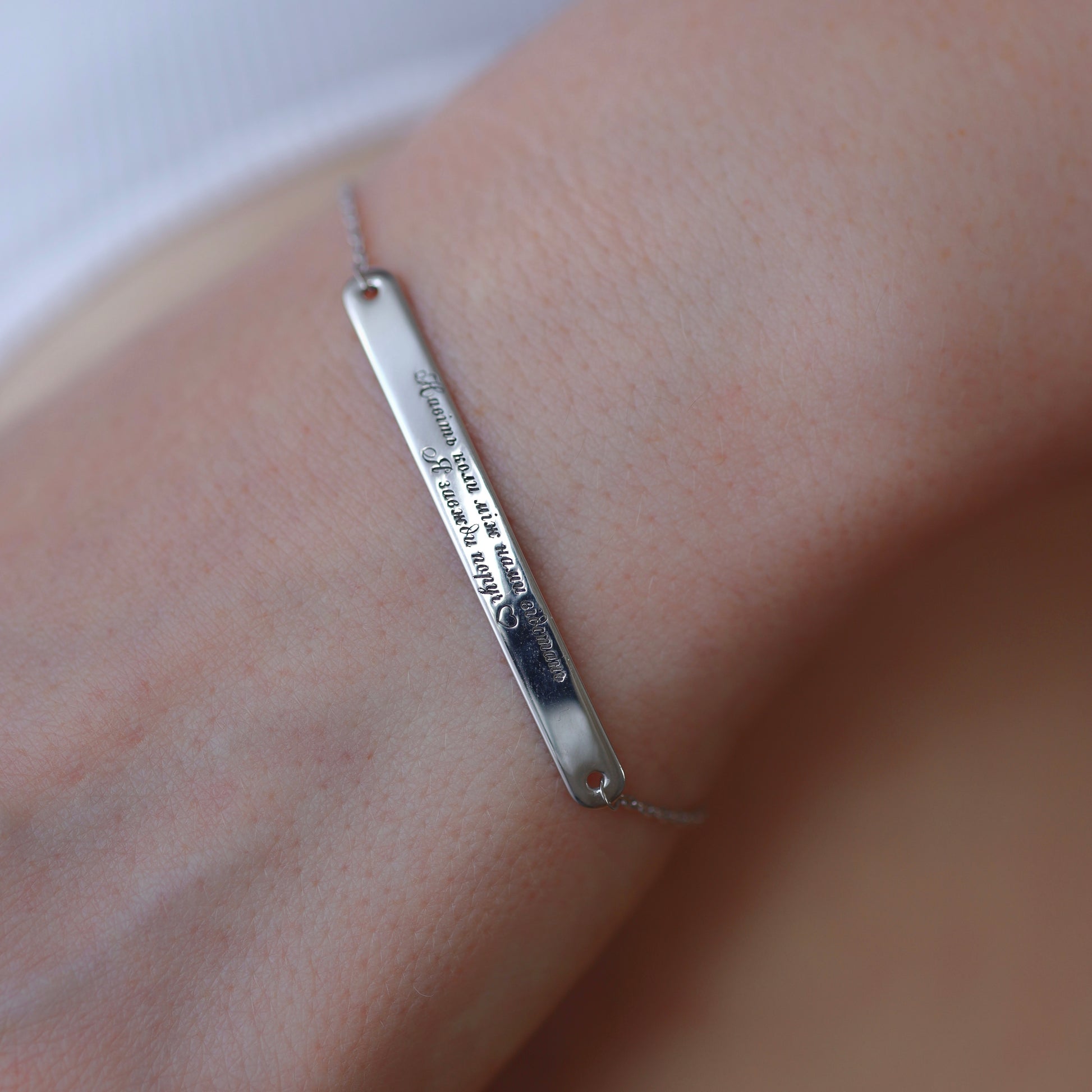 Stylish sterling silver bracelet with engraving — a jewelry piece that combines elegance with deep meaning. The plate is engraved with the words: