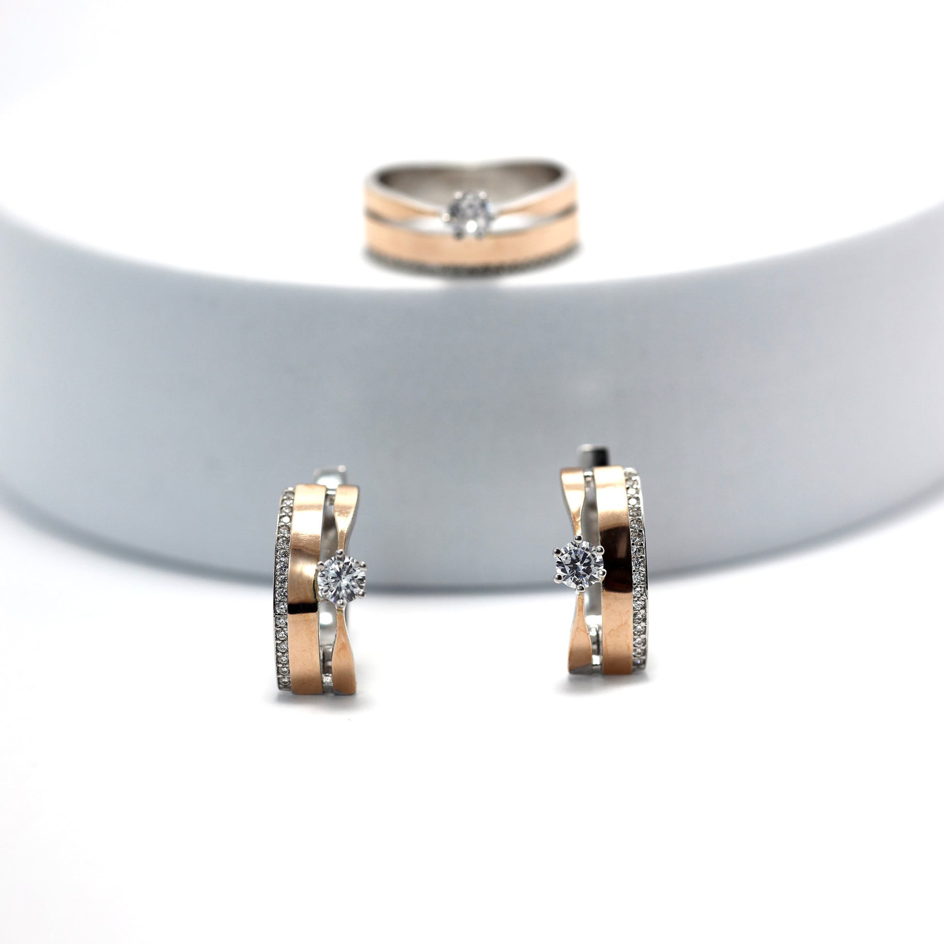 Срібний комплект прикрас з каблучкою/золоті напаяні пластинки375пр./вставки фіаніти/291