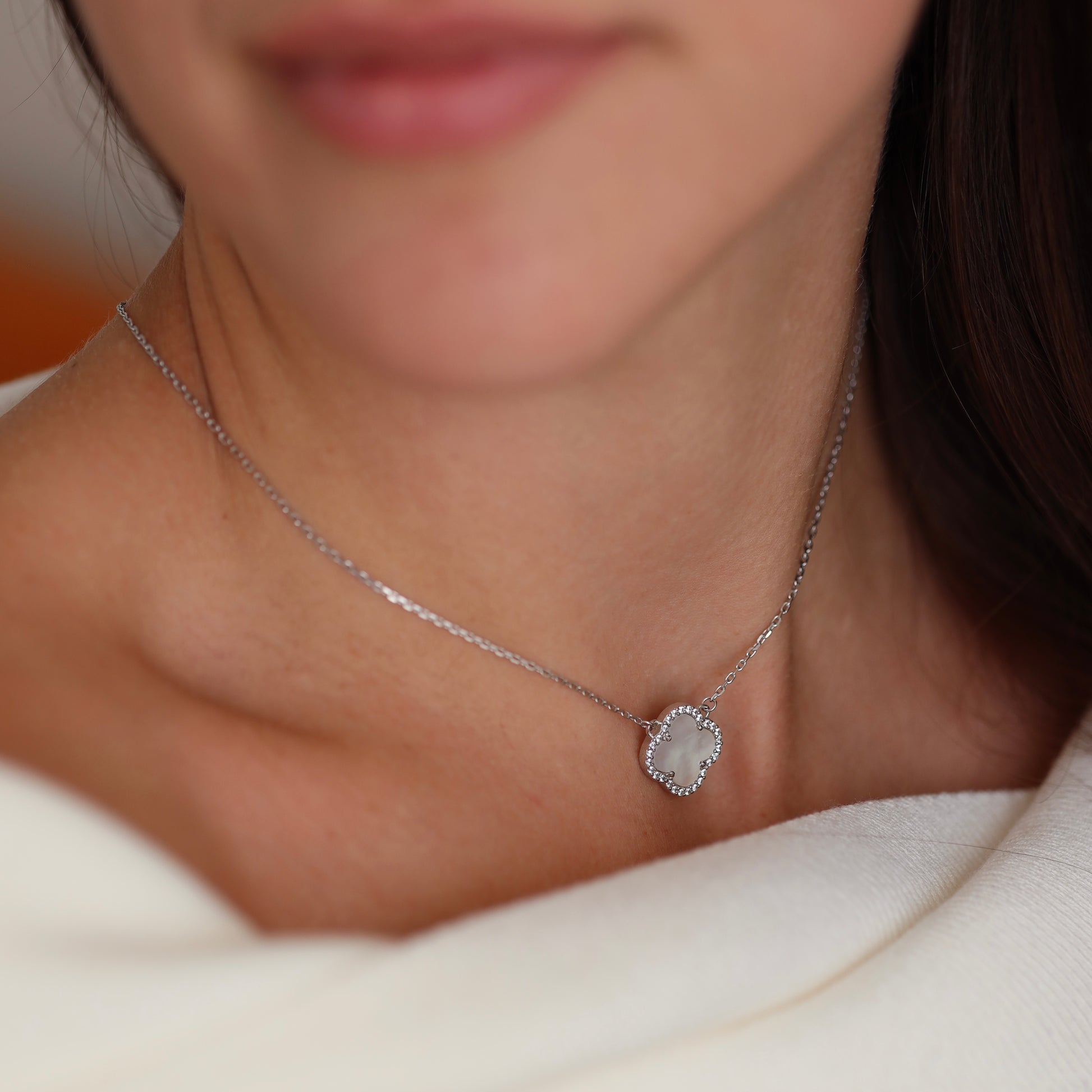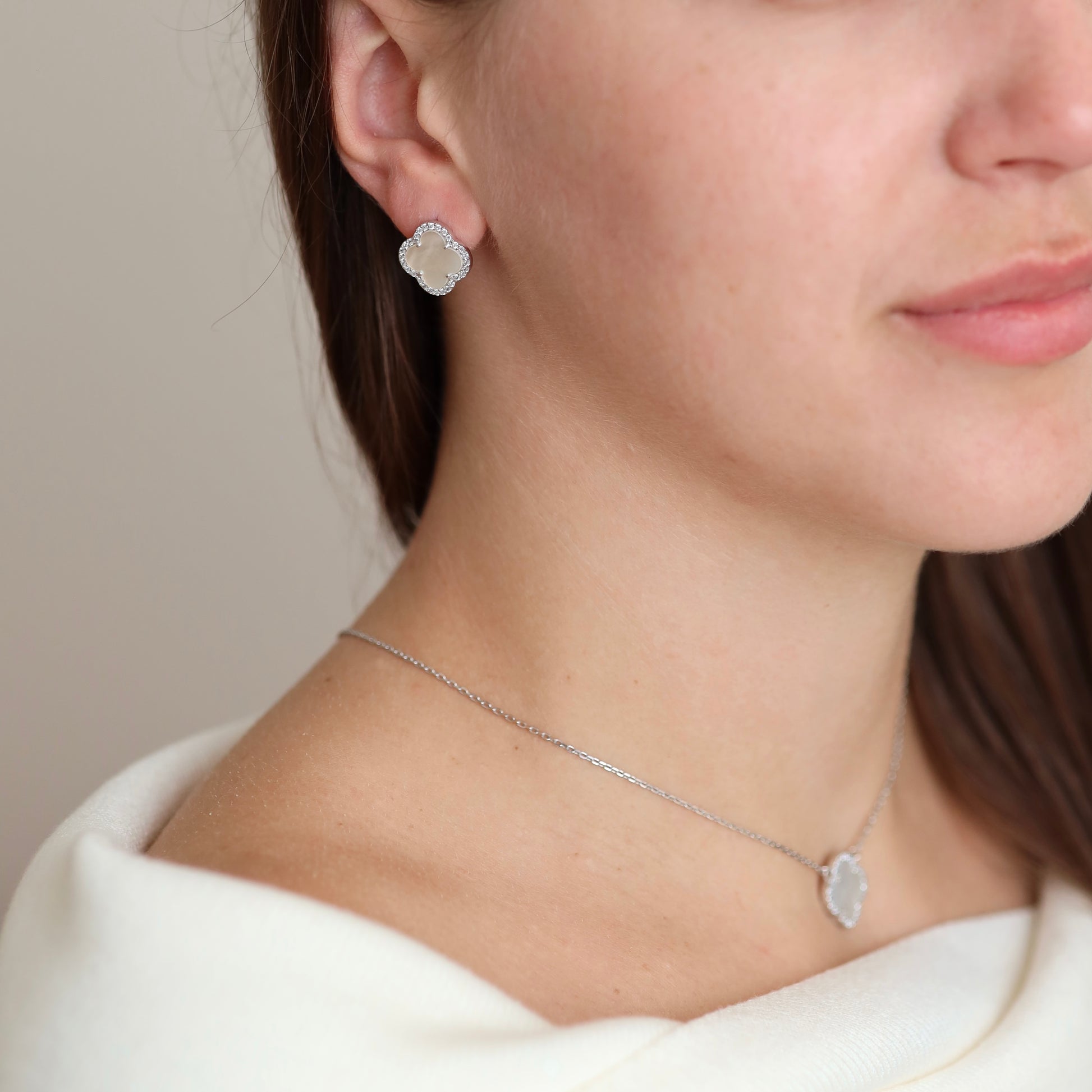 Комплект виконаний зі срібла 925пр. та вставок перламутру і фіанітів.