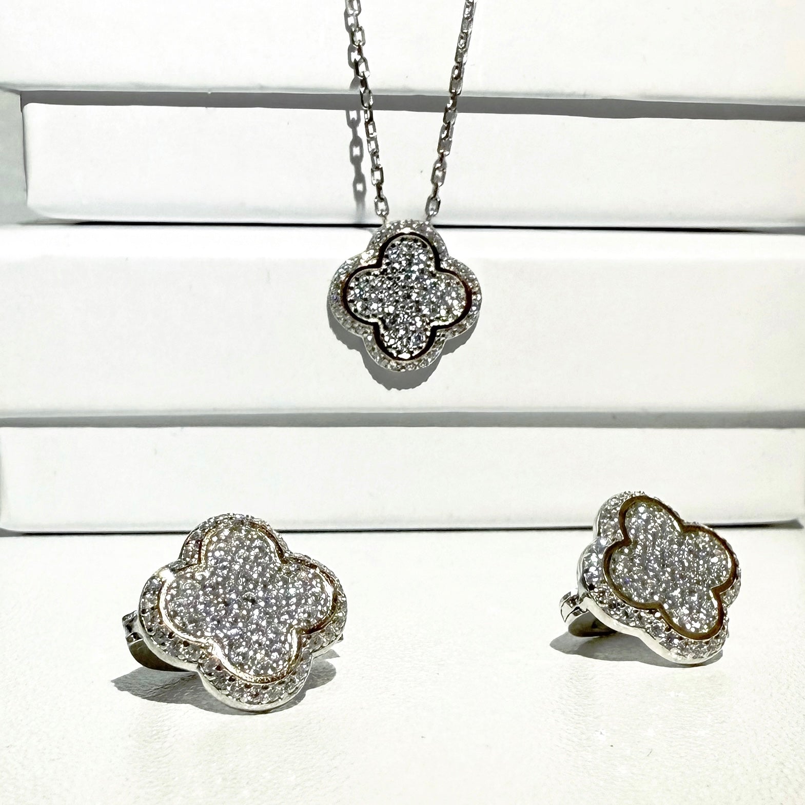 Срібний комплект прикрас з фіанітами та вставкою золота 375пр