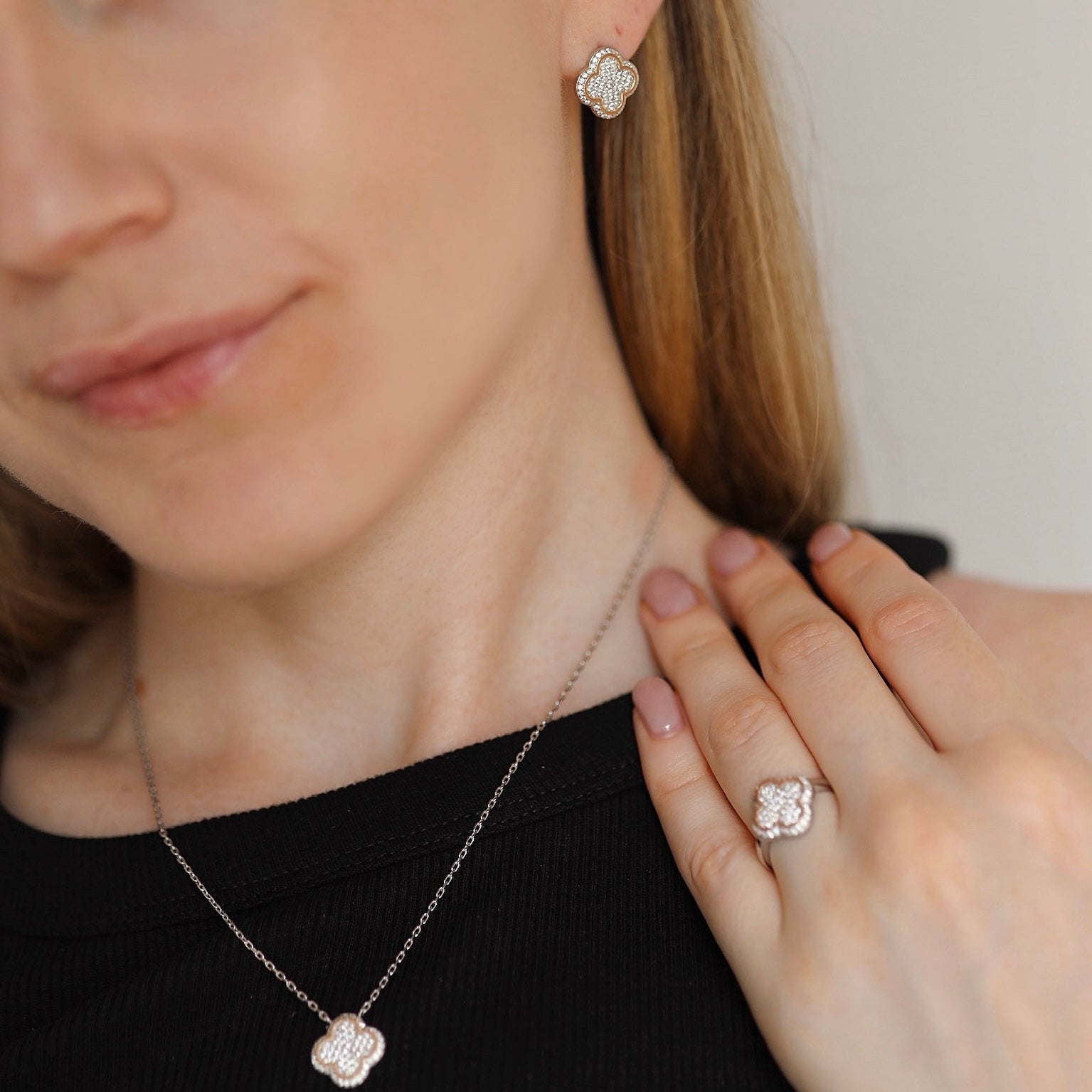Срібний комплект прикрас з фіанітами виконаний зі срібла 925пр та вставок золота 375пр.