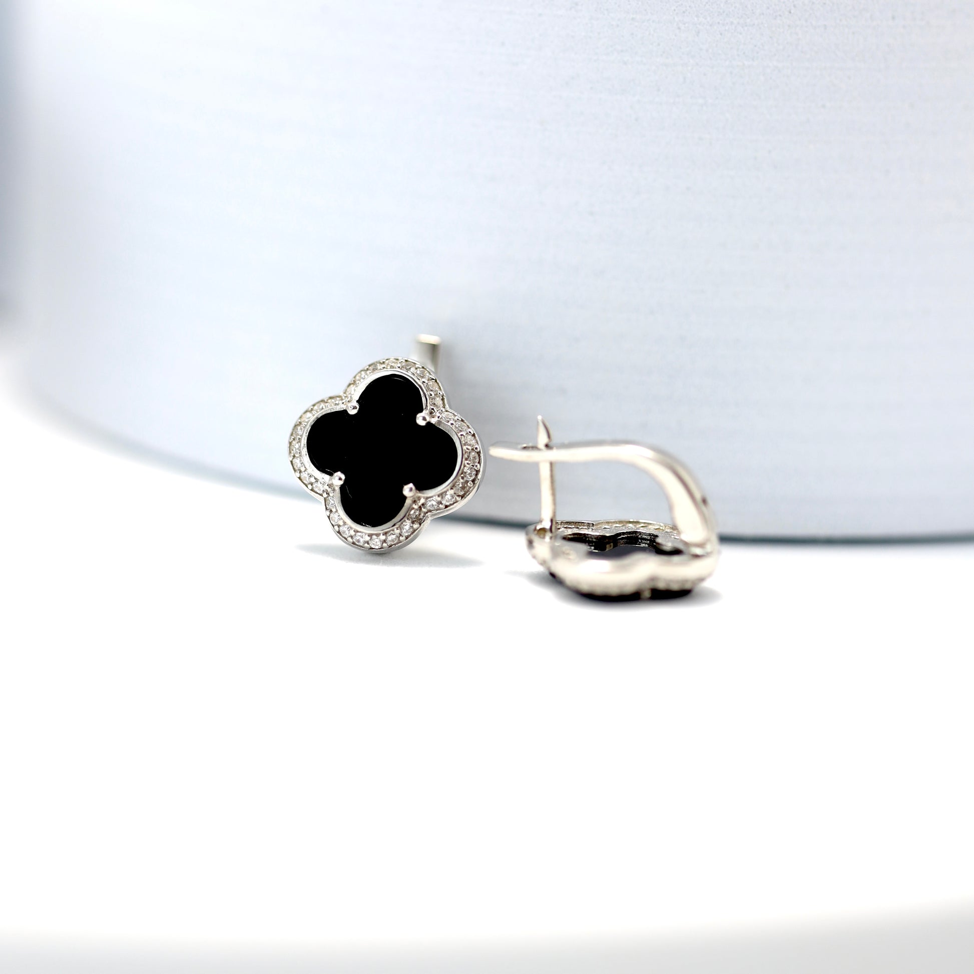 Срібні сережки з чорним оніксом та фіанітами/англійська застібка/срібло 925пр./339