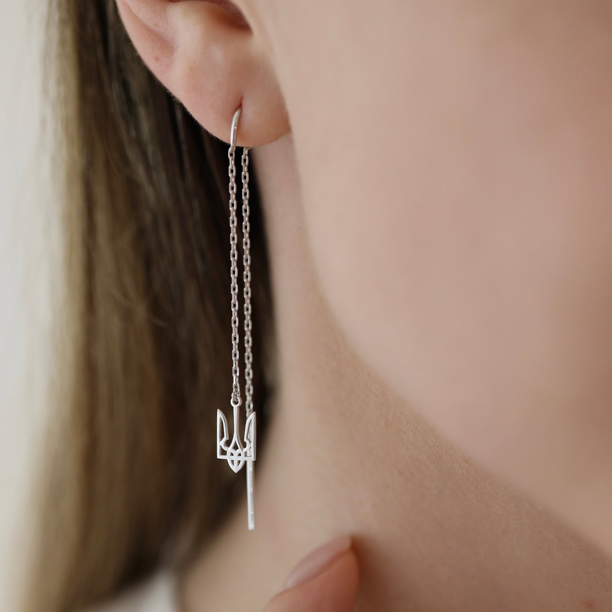 Срібні сережки протяжки/тризуб/срібло 925пр./311