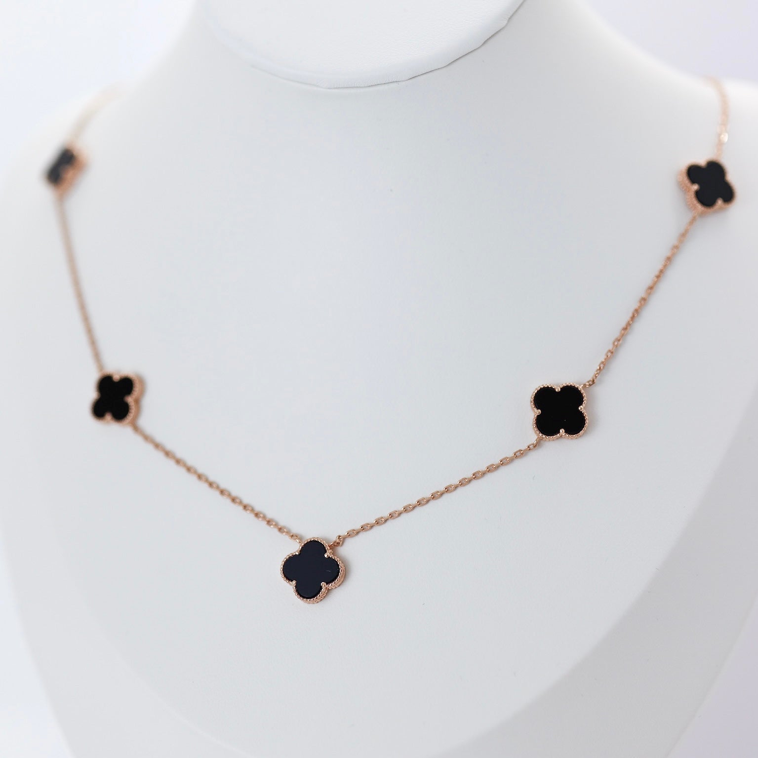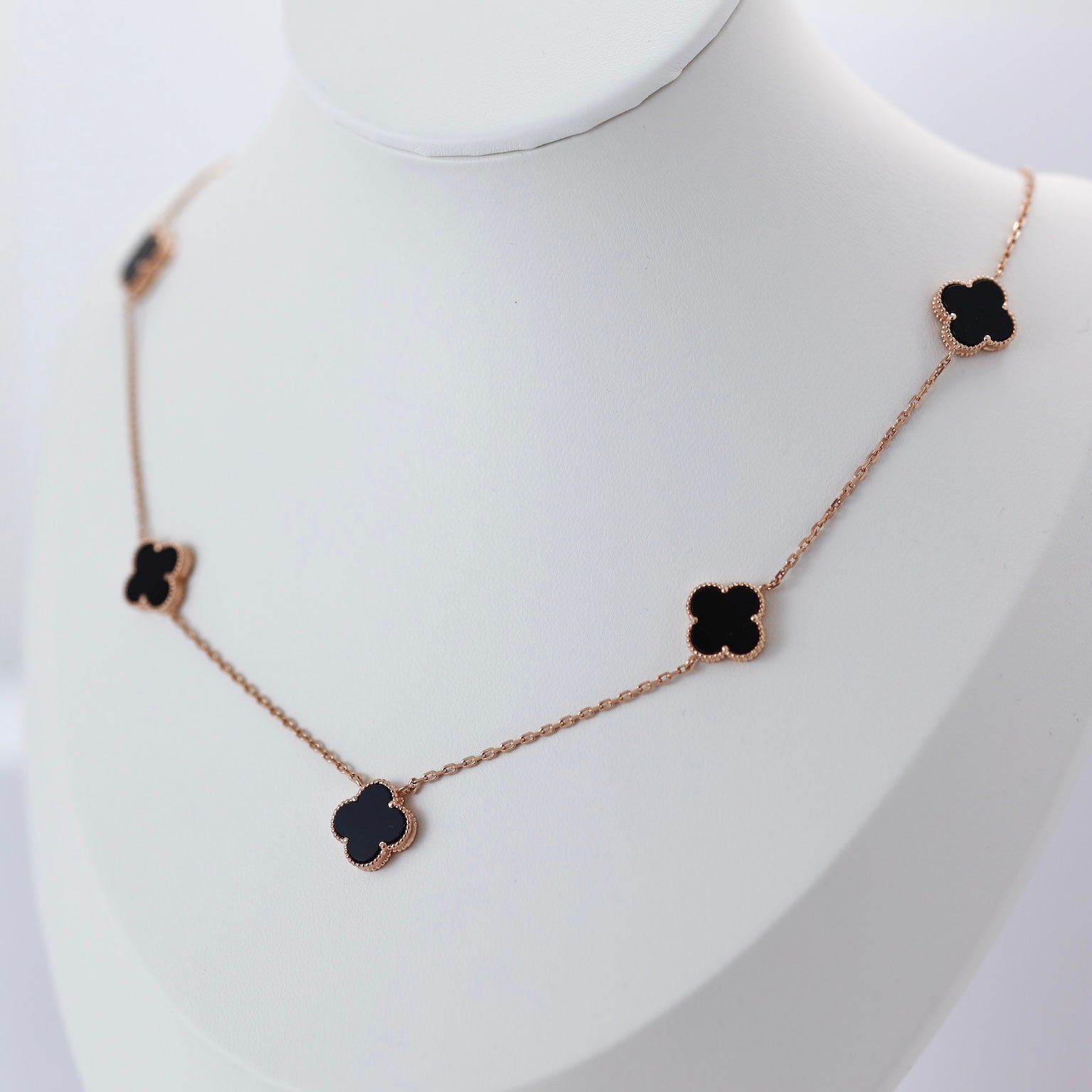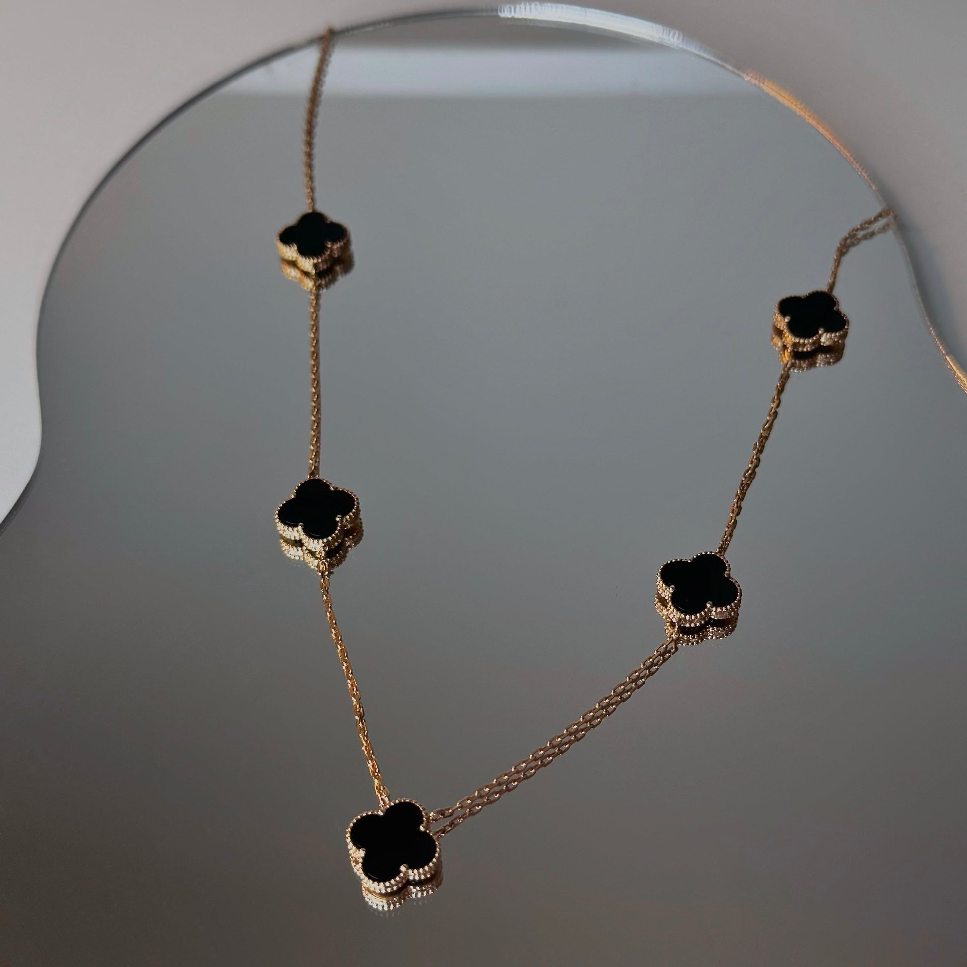 Срібне кольє вкрито позолотою 585пр. з вставкою онікс на 5 квіточок.