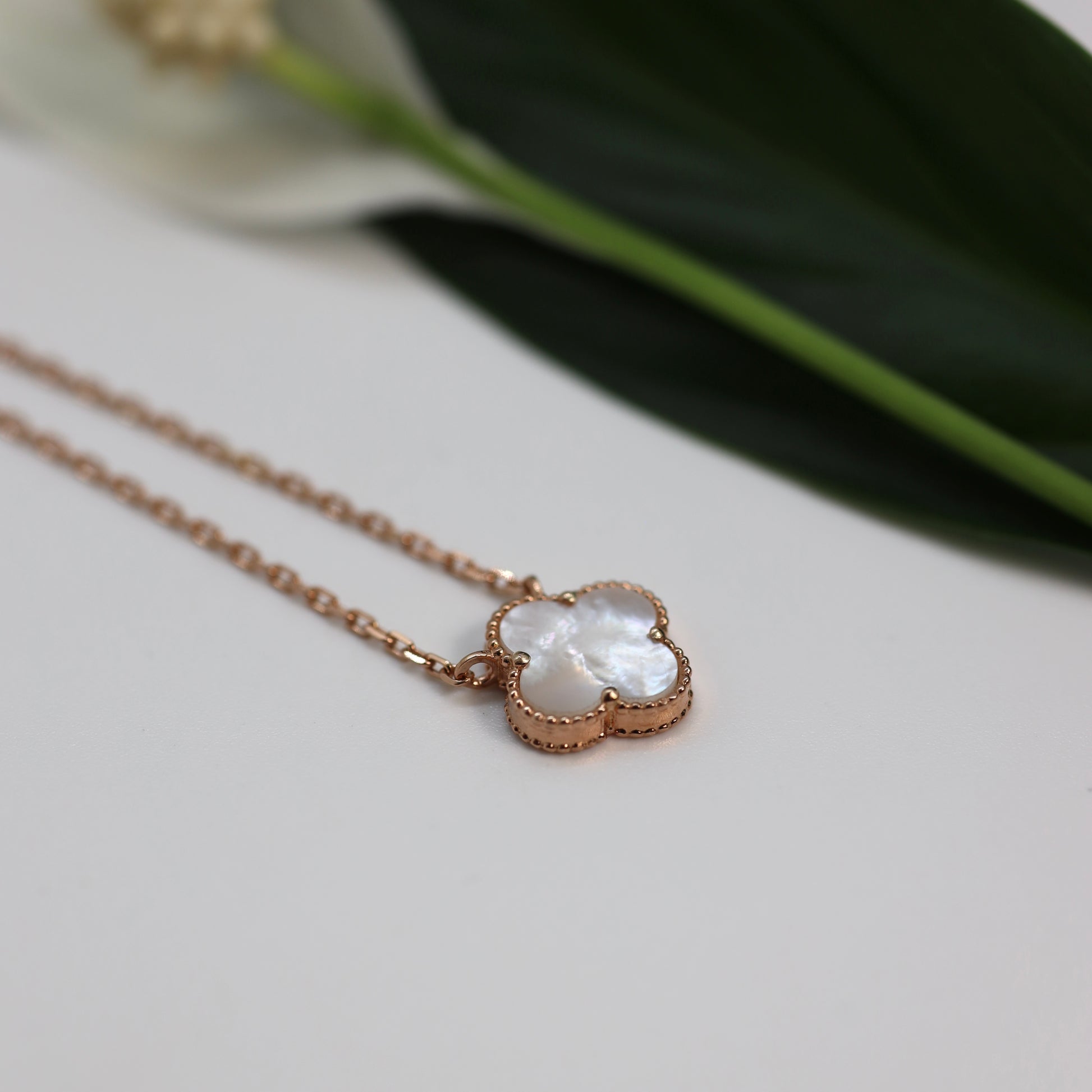 Срібне кольє вкрито позолотою 585пр. з вставкою перламутру.