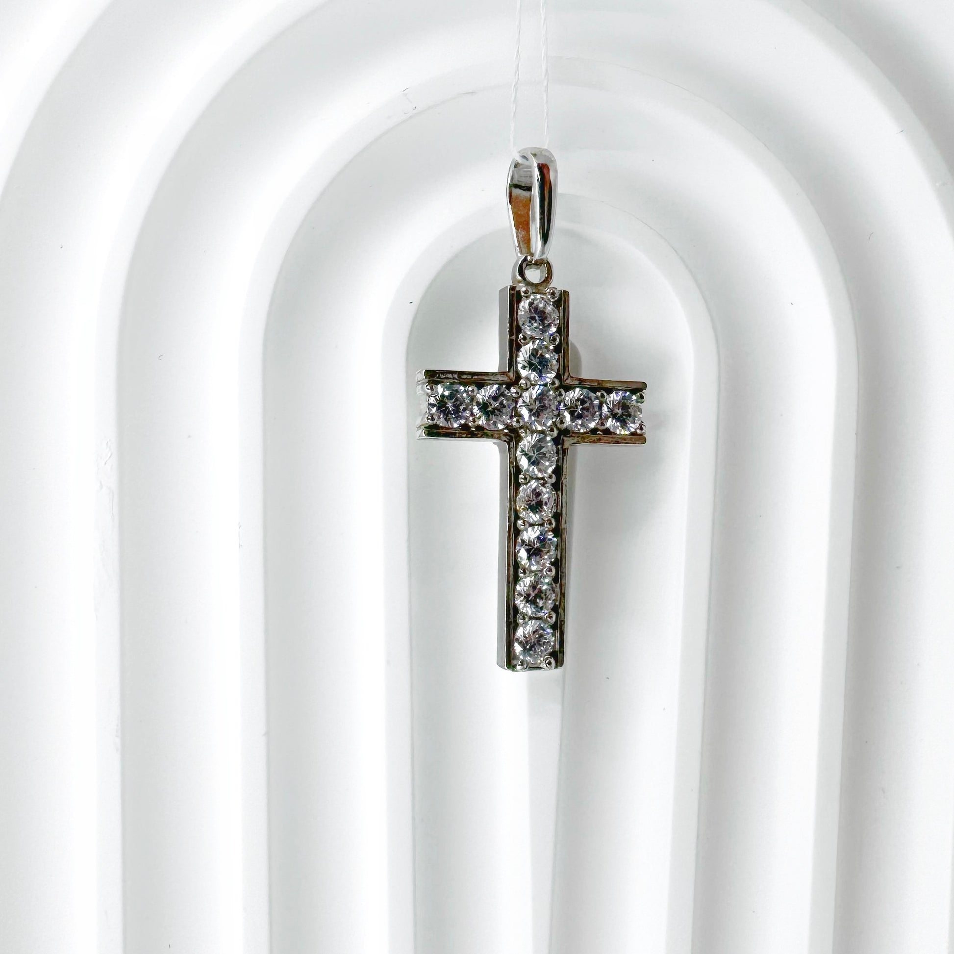 Срібний хрестик з фіанітам.