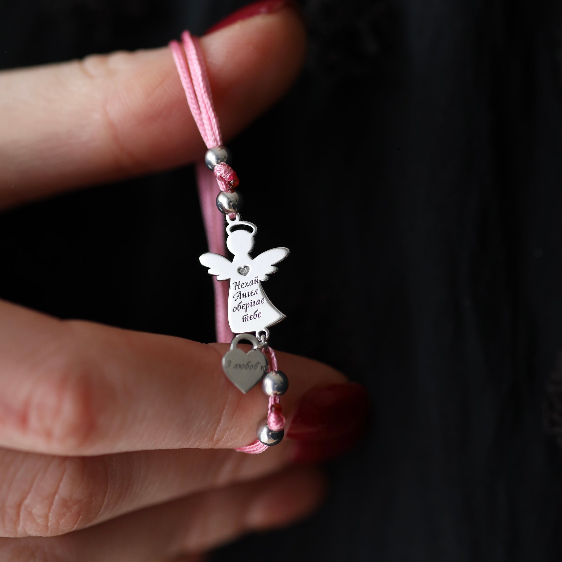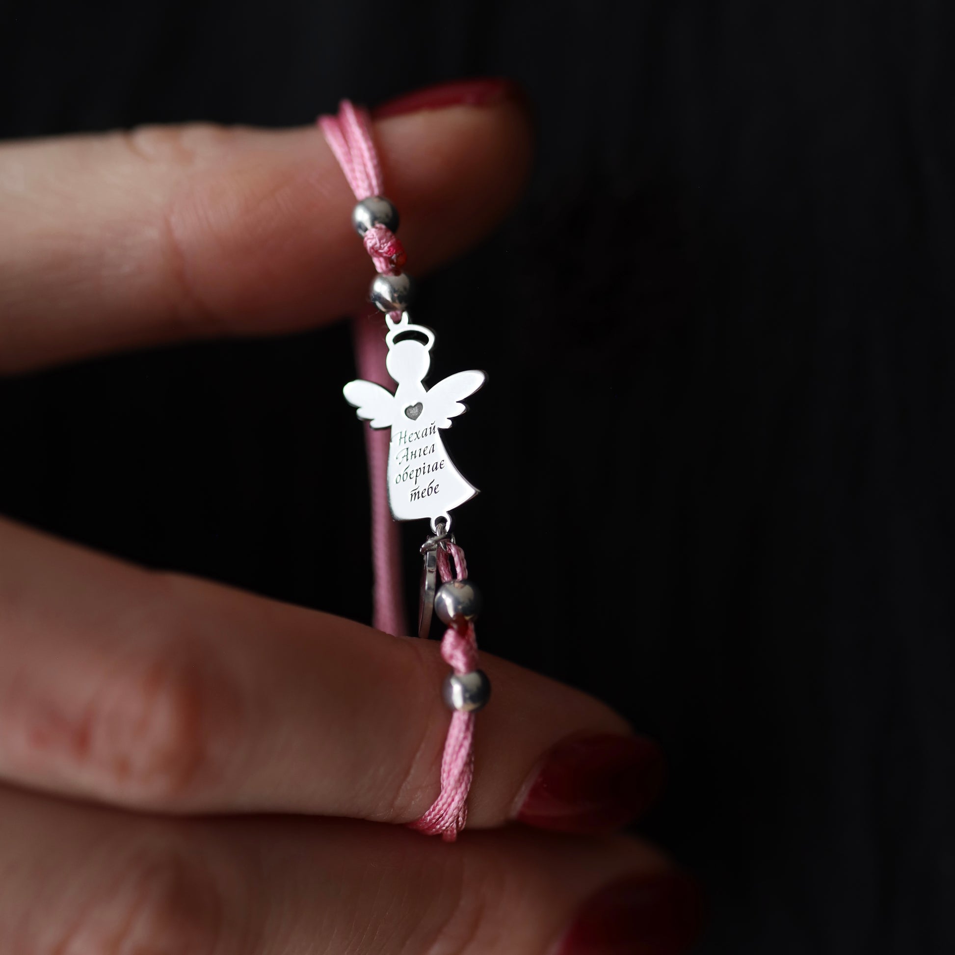 Ніжний браслет-оберіг «Янгол на рожевій ниточці» — символ турботи, світла та захисту.